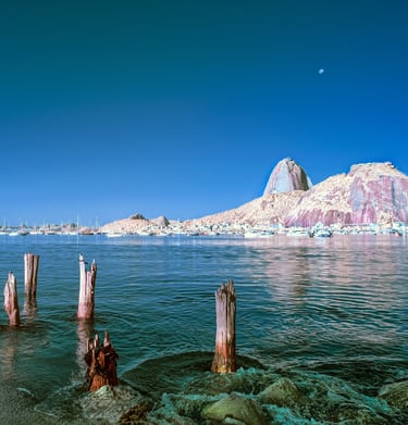 luz invisível do mundo ao nosso redor. Usando uma câmera especialmente convertida para captar luz infravermelha, as imagens revelam paisagens e cenas de viagem de uma maneira completamente nova e incomun. Cada fotografia captura o que os olhos humanos não conseguem ver: uma realidade escondida nas frequências da luz infravermelha. Caderno de Viagem convida o observador a visitar esses lugares conhecidos sob uma nova ótica, onde o comum se torna extraordinário.